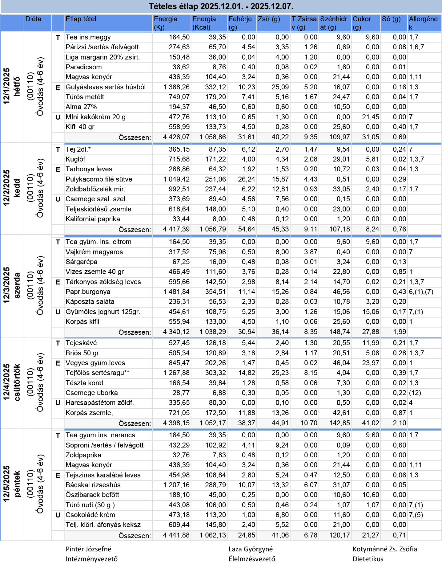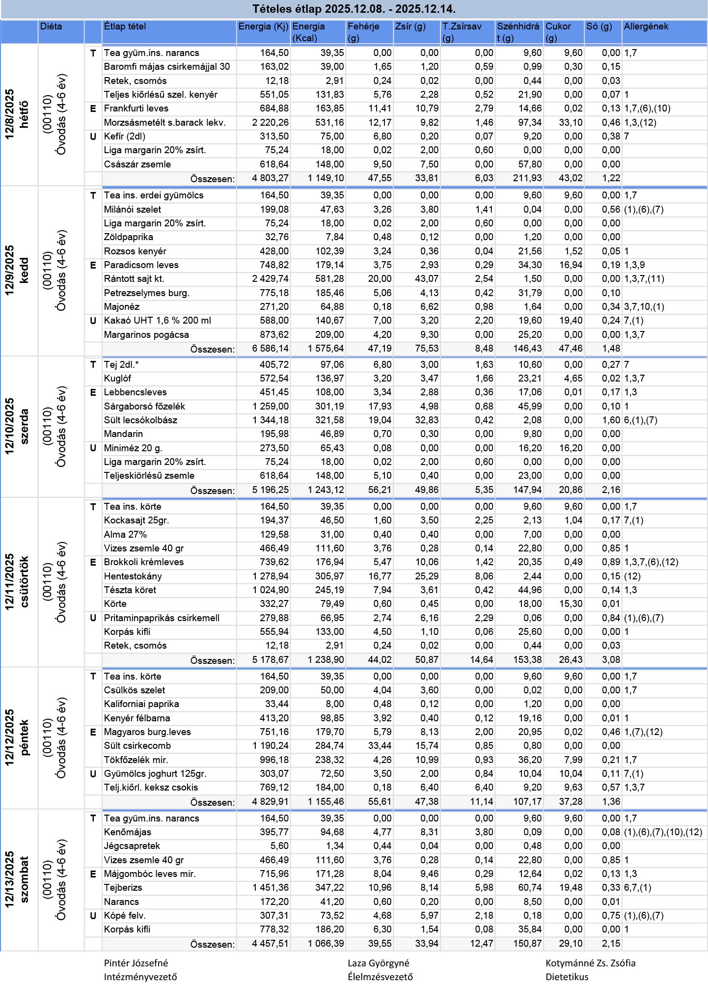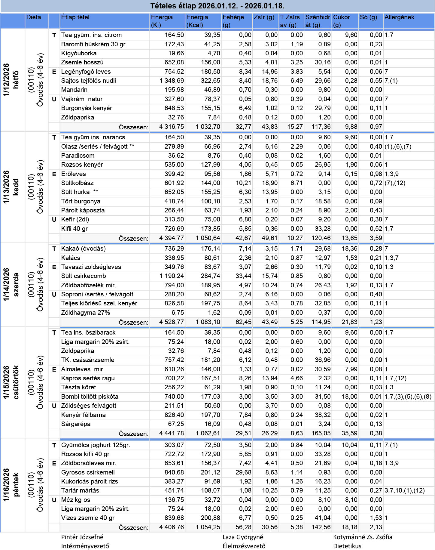 „Tájékoztatjuk a kedves Szülőket, hogy a diétás étlapok a honlapon és az óvodákban is megtekinthetők.”